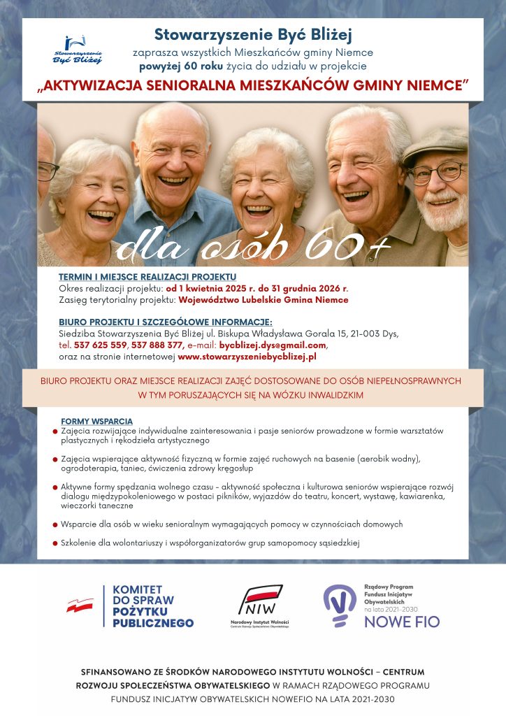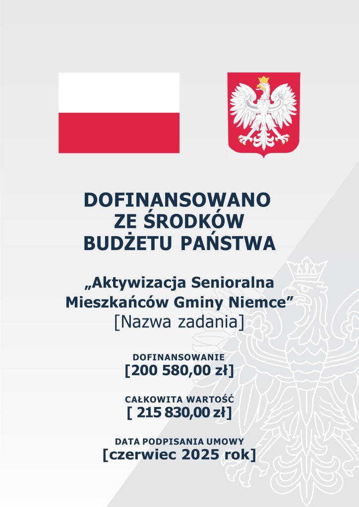 SERDECZNIE ZAPRASZAMY DO UDZIAŁU W PROJEKCIE AKTYWIZACJA SENIORALNA MIESZKAŃCÓW GMINY NIEMCE