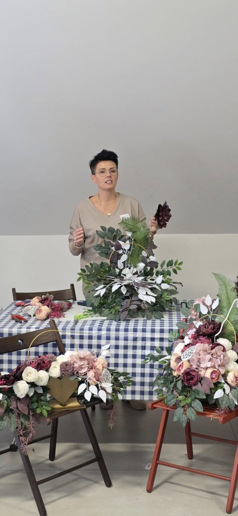 Warsztaty florystyczne, które poprowadziła Monika Zabłocka były okazją do rozwijania zdolności manualnych oraz integracji seniorów zrzeszonych w Klubie Seniora działającym przy Stowarzyszenie Być Bliżej. Tematem zajęć było tworzenie wieńców na Wszystkich Świętych.